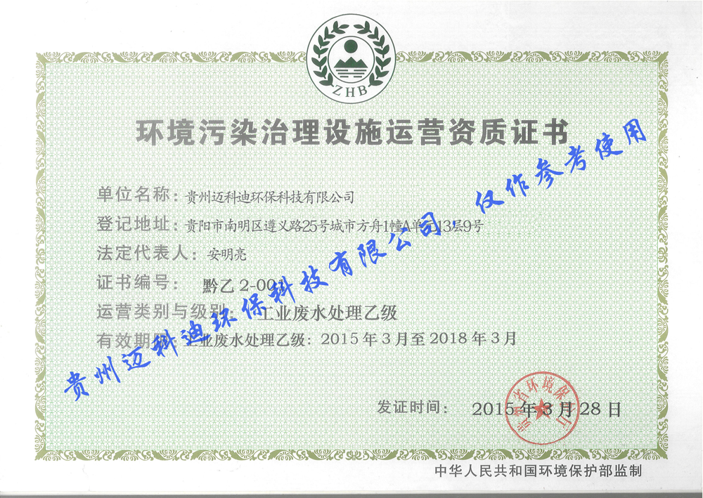 貴州邁科迪環保科技有限公司,是貴州省一家大型的綜合水處理設備公司,公司集純水,超純水,污水,工業廢水工程的設計,制作,安裝,調試,售后服務以及水處理設備技術和配件的研發,生產,銷售等于一體的大型環保專業化生產企業。本公司擁有高壓脈沖電絮凝水處理技術。在重金屬廢水處理,焦化廢水處理,磷化廢水處理,制藥廢水處理,皮革廢水處理,化工廢水處理,電鍍廢水處理,石油天然氣鉆井廢水處理等領域,取得了驕人的成績。公司經過多年的研究實踐,制研發出一體化工業廢水處理設備,一體化電子高壓脈沖電絮凝設備...